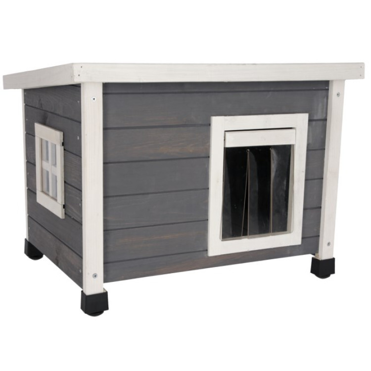 2. Komfort pro vašeho mazlíčka: Odklopná dvířka s průhlednými lamelami chrání kočku před větrem a chladem, zatímco malé okénko s plexisklem zajišťuje dostatek světla.