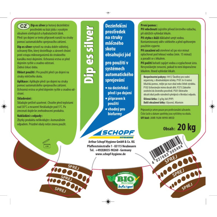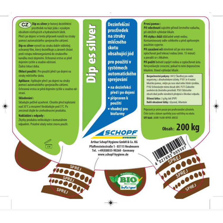 struky mléčného skotu po každém dojení, vhodný i pro aplikaci do sprejovacích zařízení. Zlepšuje