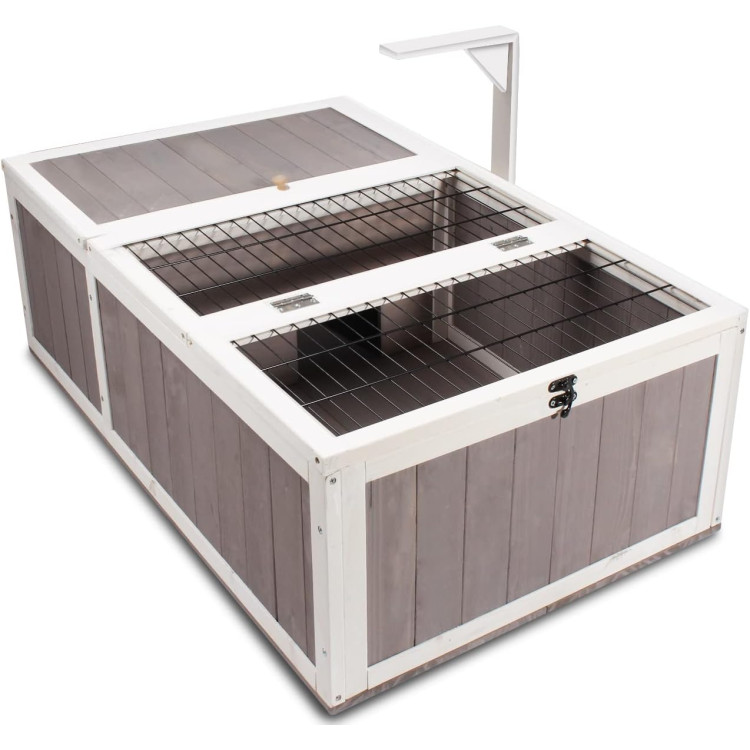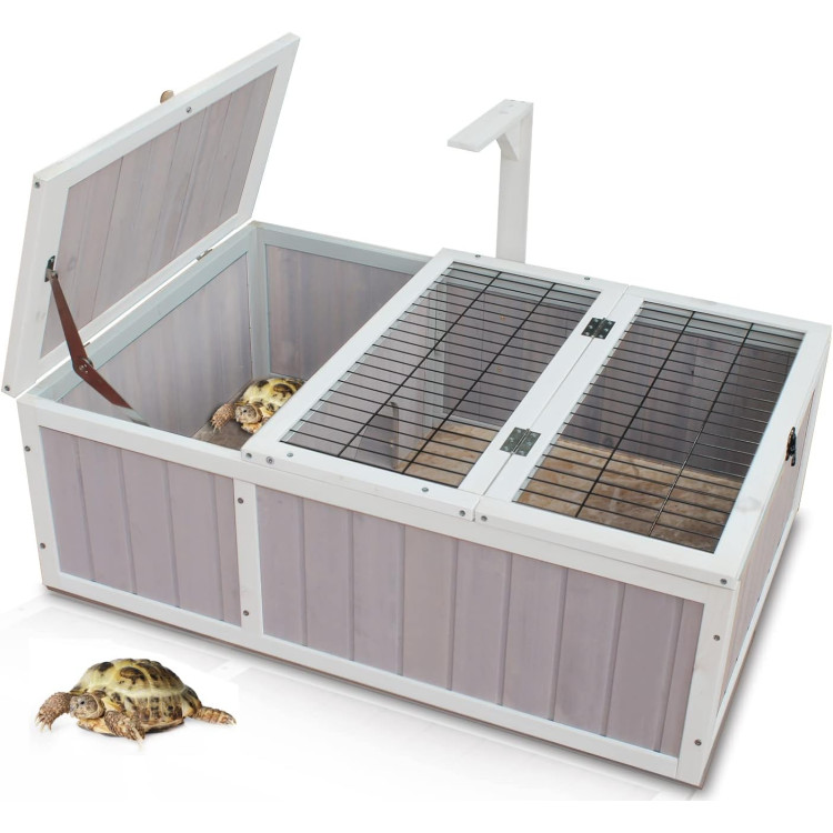Dřevěný výběh AGROFORTEL 0878 poskytne želvě nebo jinému malému zvířeti bezpečné a přehledné zázemí pro odpočinek i běžný denní pohyb. Kombinuje krytou odpočinkovou část s otevřeným prostorem pro krmení, vodu a další vybavení, takže pomáhá vytvořit praktičtější a pohodlnější prostředí pro každodenní chov.