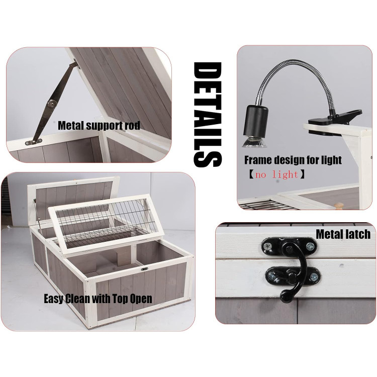 Výběh je vyroben ze 100% masivního jedlového dřeva. Součástí konstrukce je také mřížovaná část a západka pro bezpečnější uzavření. Použité materiály a řešení podporují stabilitu výběhu a zároveň vytvářejí prostředí vhodné pro želvy a jiná malá zvířata.