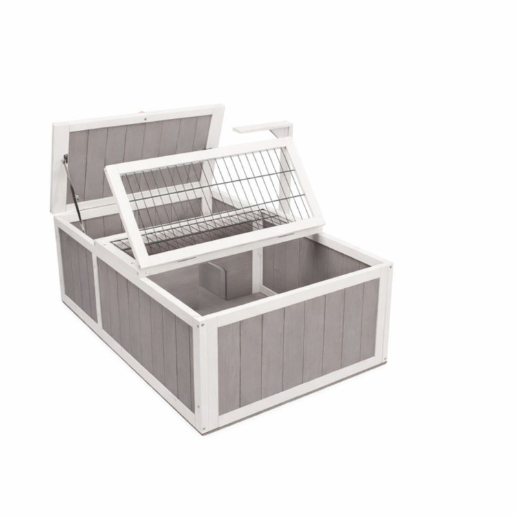 Výklopná horní část obou sekcí usnadňuje přístup, čištění i kontrolu zvířete.