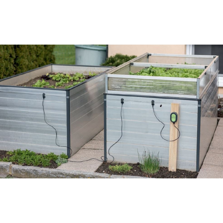 Základní sada obsahuje 10 m pásky a systém je možné prodloužit až na maximální délku 30 m. Pokud potřebujete chránit více míst, lze s propojovacími konektory napojit více záhonů na jeden zdroj impulzů, takže není nutné pořizovat další napájecí jednotku. Jeden zdroj impulzů lze využít až pro 3 samostatné okruhy (při použití propojovacích konektorů). Hodí se to například pro několik vyvýšených záhonů nebo pro kombinaci záhonu a lemů u země.