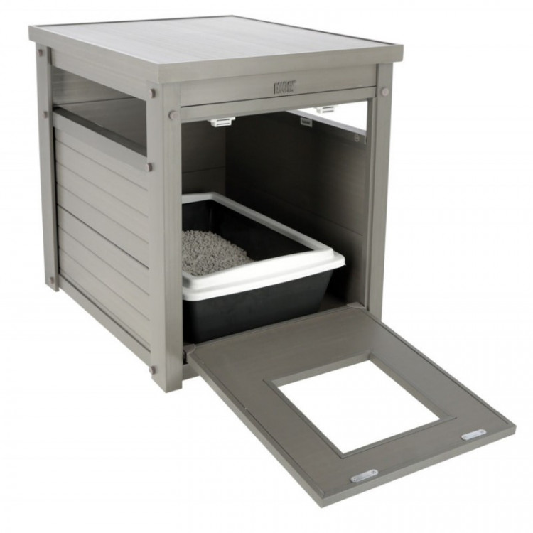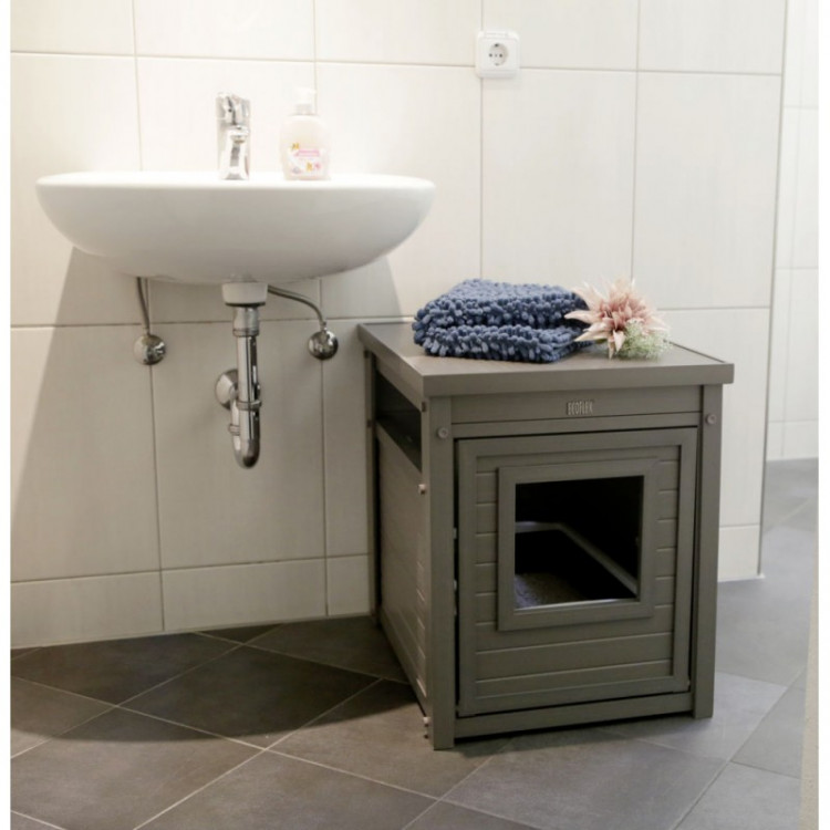 Vzhled běžné skříňky zapadne do domácnosti a pomůže udržet kočičí WC vizuálně mimo pozornost.
