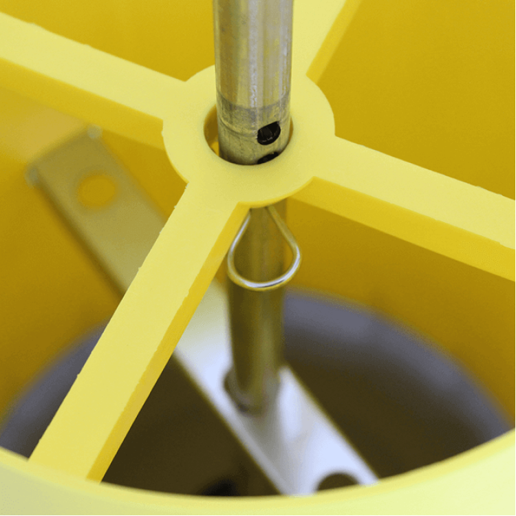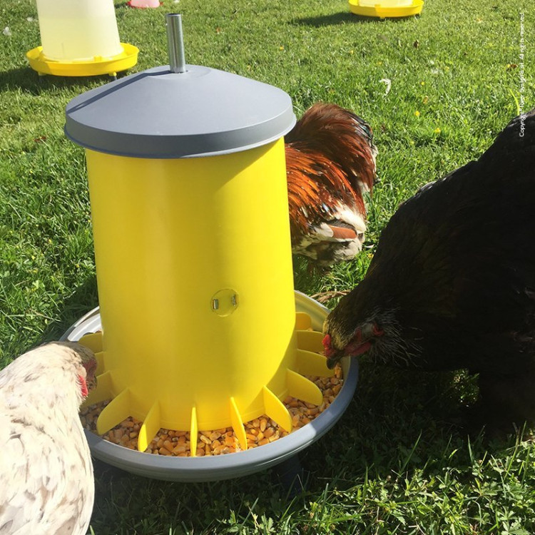 • Nastavitelná výška krmiva v misce: Krmítko je vybaveno kovovou nosnou tyčí se třemi polohami nastavení. Pomocí závlačky si jednoduše zvolíte, kolik krmiva bude v misce – podle typu krmiva i chuti drůbeže.