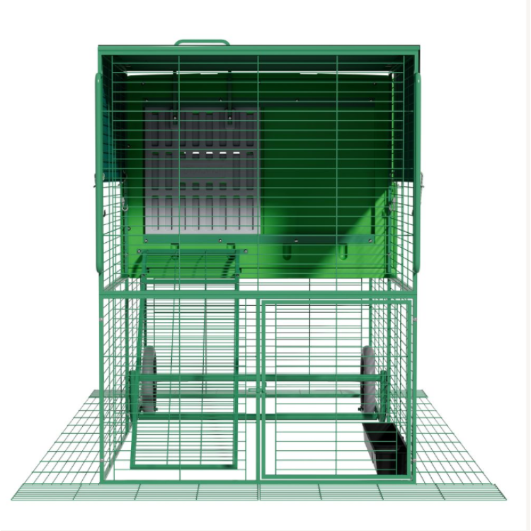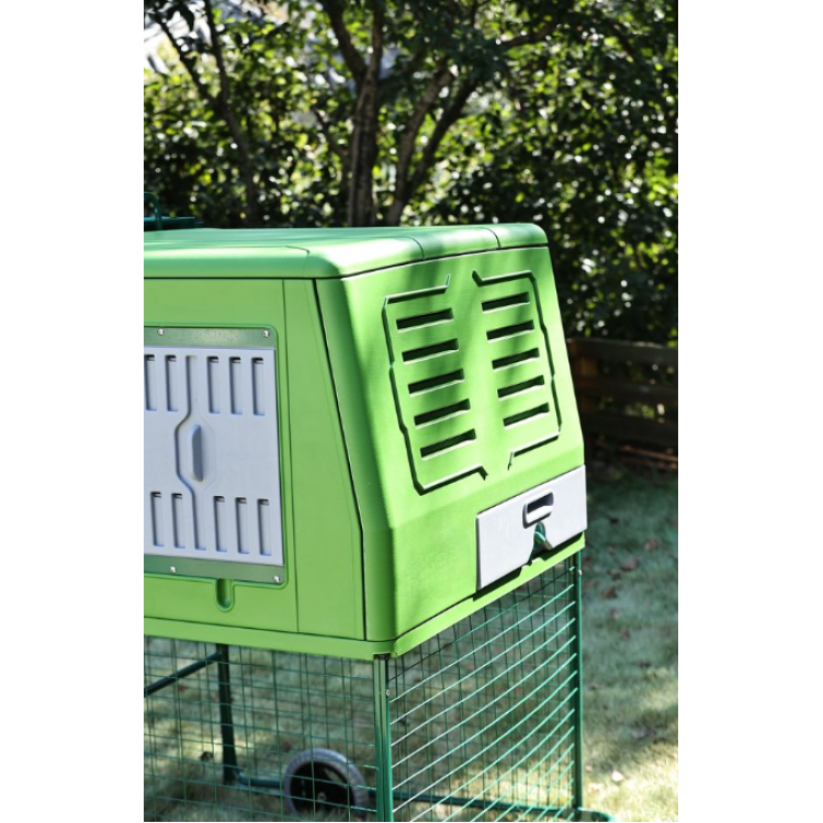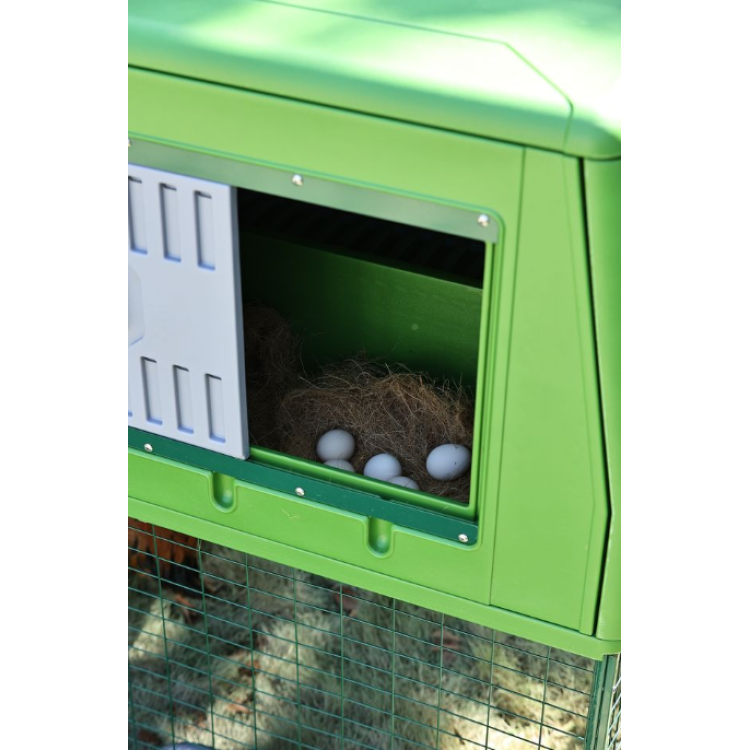 Model THE EGG CHALET kombinuje uzavřenou část pro nocování a snášku s navazujícím výběhem. Slepice tak mají bezpečné útočiště i prostor pro denní aktivitu.