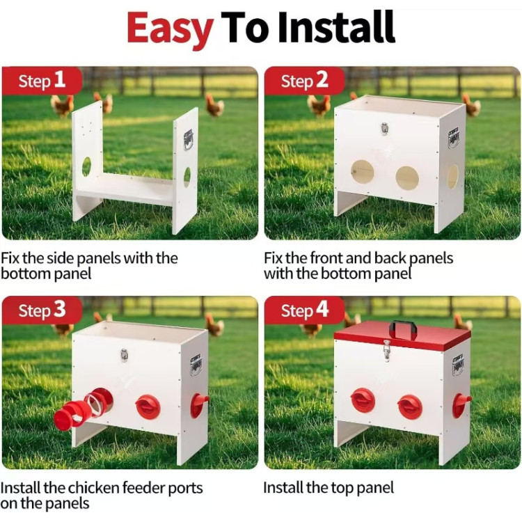 Díky 6 krmným otvorům mají slepice dostatek prostoru ke krmení současně. To pomáhá snížit agresivitu a zajistit rovnoměrný přístup ke krmivu i pro slabší jedince.