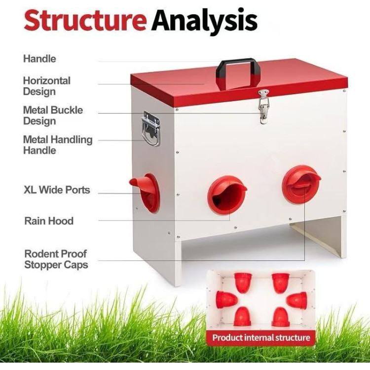Krytý design chrání krmivo před deštěm, vlhkostí i nečistotami. Zároveň omezuje přístup škůdců, jako jsou hlodavci nebo volně žijící ptáci.