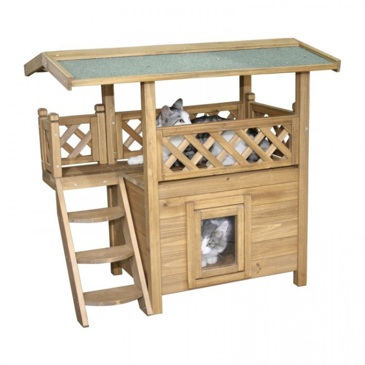 Kočičí pelíšek – bouda Lodge s terasou je dřevěný domek pro kočku, který se hodí na zahradu i balkón. Nabízí chráněné místo uvnitř a navíc praktickou terasu se schůdky pro odpočinek a pozorování okolí. Vchod je doplněný dvířky s klapkou a bouda se dodává rozložená v krabici pro snadnou montáž.