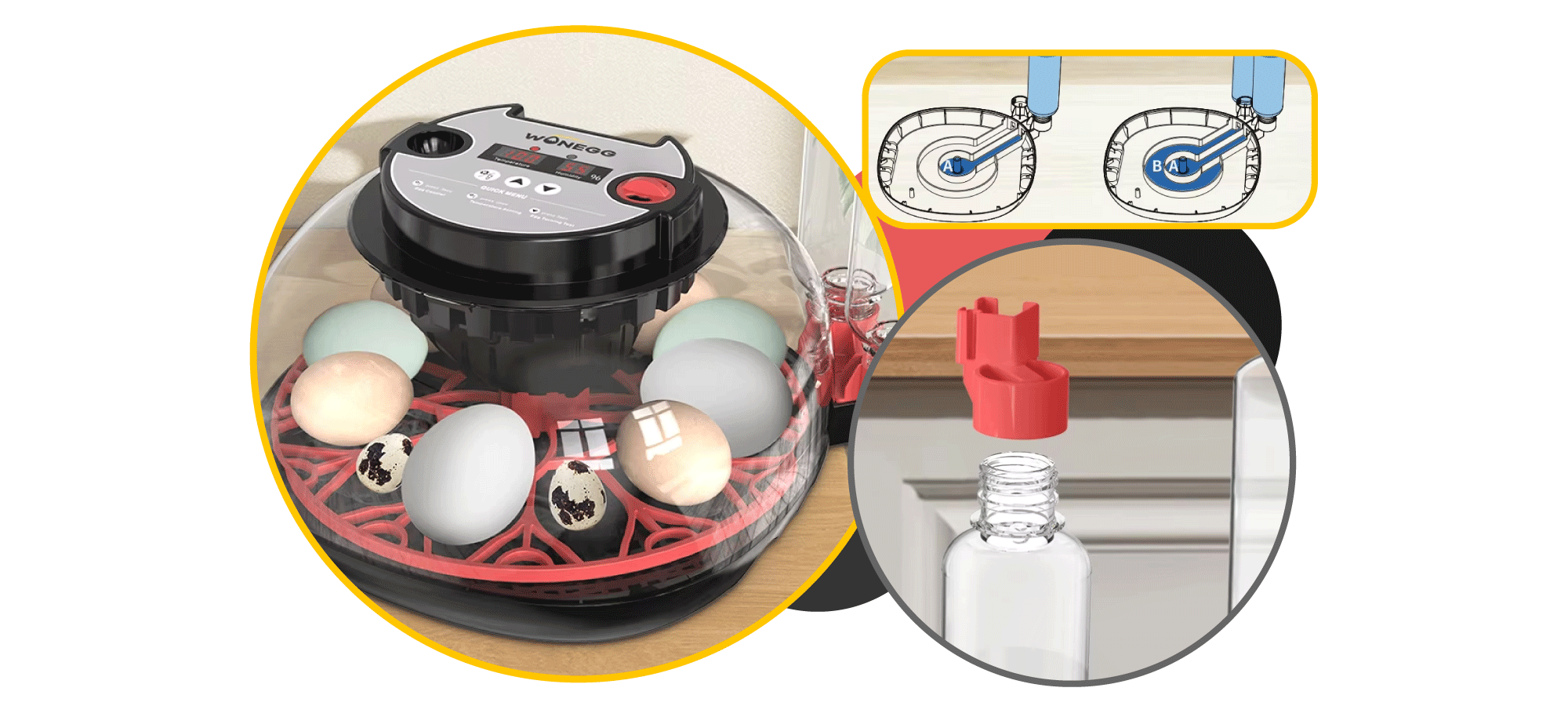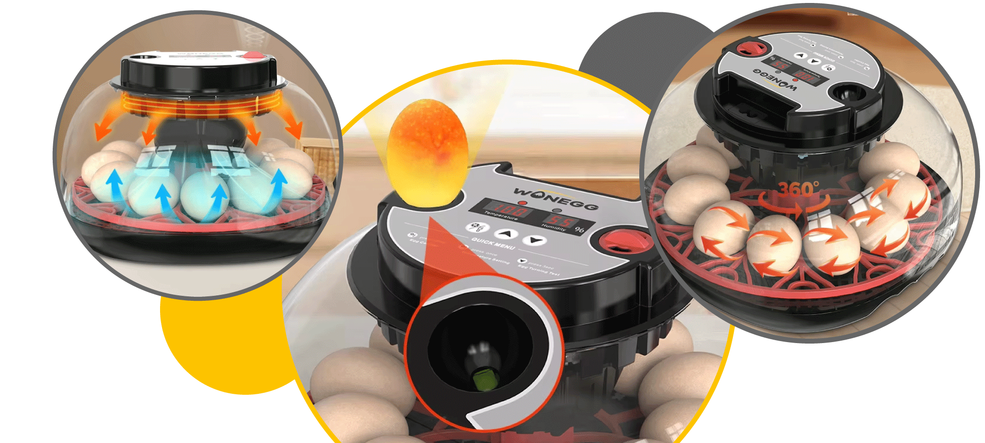 - Automatické otáčení vajec: Vajíčka se automaticky otočí každé 2 hodiny, což napodobuje přirozený proces líhnutí a zabraňuje přilepení embrya na stěnu vejce.