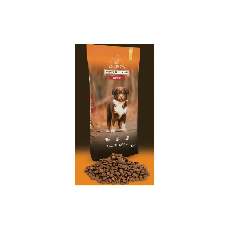Prémiové kompletní krmivo bohaté na hovězí, určené pro štěňata a mladé psy všech plemen. Obsahuje 32 % masa (hovězího a vepřového) a 79 % bílkovin živočišného původu, které zajišťují zdravý růst, silné kosti, správné trávení a lesklou srst. DOG PUPPY & JUNIOR BEEF dává vašemu psovi ten nejlepší start do života – vyváženě, chutně a s kvalitními surovinami. Velikost granule: 10 mm.