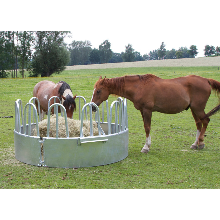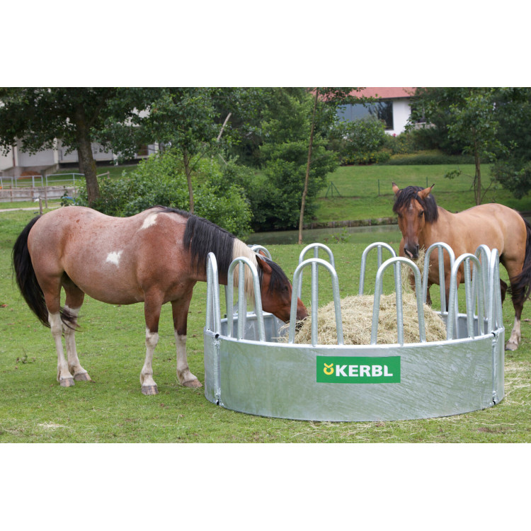Kruhové příkrmiště pro skot a koně o průměru 2,3 m je určené pro krmení sena z běžných i kulatých balíků. Nabízí 12 krmných míst a palisádovou krmnou zábranu, aby zvířata přistupovala ke krmivu zvenku po celém obvodu. Dodává se jako 3dílná stavebnice, je žárově pozinkované a díky tříbodovému zavěšení ho snadno přemístíte traktorem.