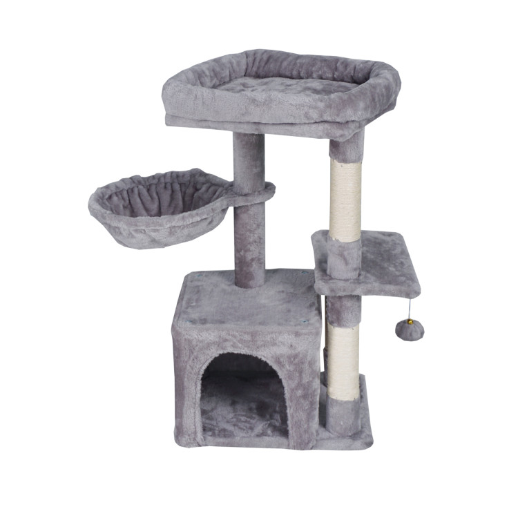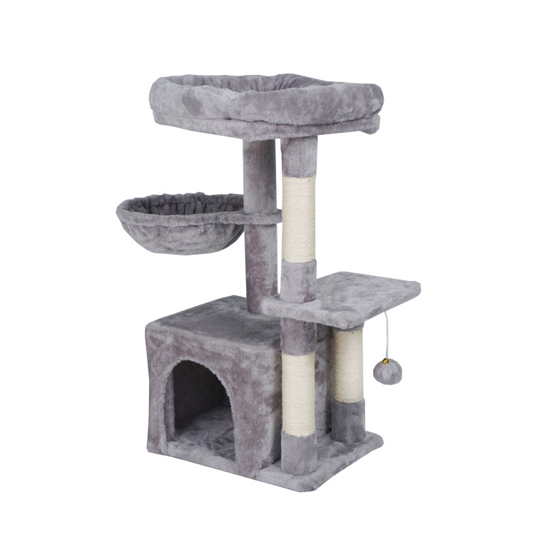 Škrábe vám Váš chlupatý mazlíček sedačku a šplhá po záclonách? S naším vymazleným škrabadlem už nebude! Dopřejte své kočičce místo, kde může beztrestně pečovat o své drápky, šplhat do výšek, lenošit v plyšovém domečku, nebo si dopřávat odpolední siestu v houpací síti. Tenhle víceúrovňový kočičí strom nabízí vše, co Vaše kočka potřebuje.
