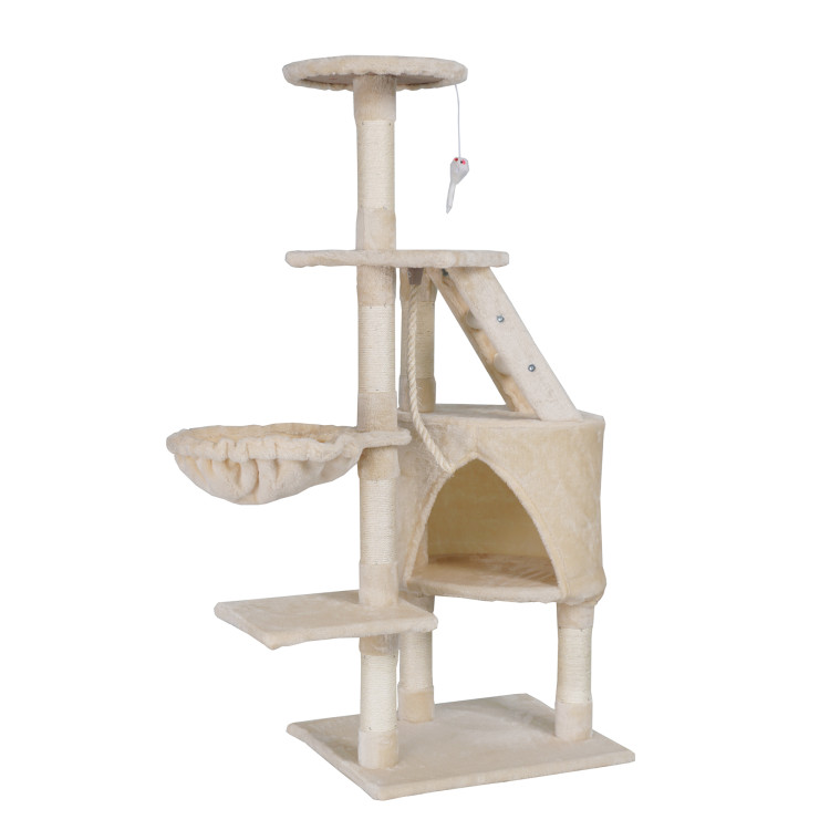 Škrábe vám Váš chlupatý mazlíček sedačku a šplhá po záclonách? S naším vymazleným škrabadlem už nebude! Dopřejte své kočičce luxusní útočiště. Toto víceúrovňové škrabadlo je dokonalou kombinací komfortu, bezpečí a zábavy, díky čemuž splní všechny potřeby vaší kočičky. Nabízí útulný domeček, tři vyvýšené plošiny, myšku a lano na hraní, houpací síť a sisalové škrábací sloupky. Moderní design v béžovém provedení skvěle doplní váš interiér.