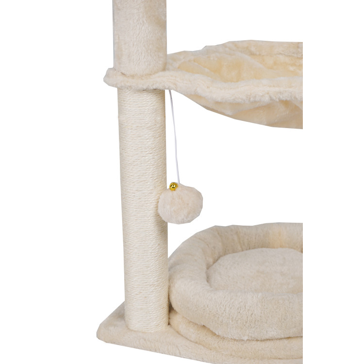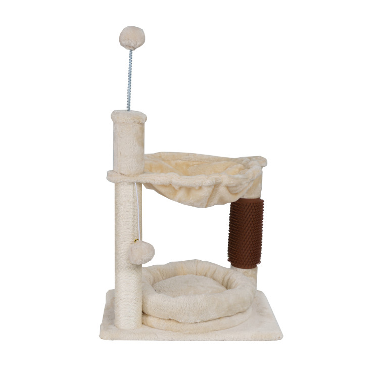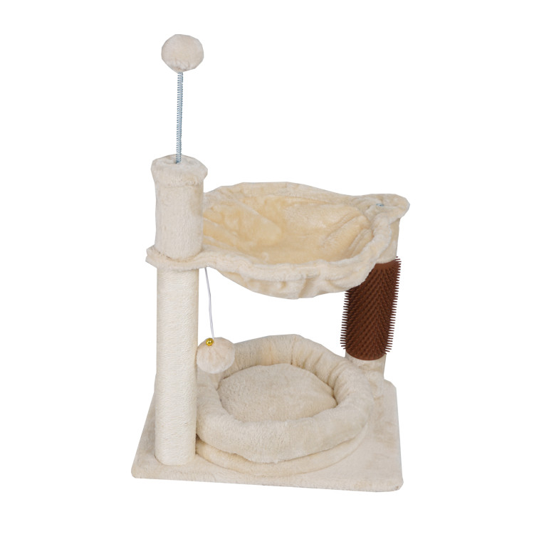 Škrábe vám Váš chlupatý mazlíček sedačku a šplhá po záclonách? S naším vymazleným škrabadlem už nebude! Dopřejte své kočičce místo, kde může beztrestně pečovat o své drápky, šplhat do výšek, lenošit v plyšovém domečku, nebo si dopřávat odpolední siestu v houpací síti. Jako jedno z mála škrabadel obsahuje tento model také drbadlo.