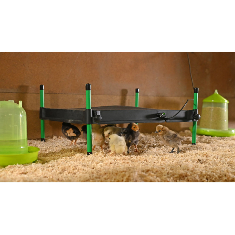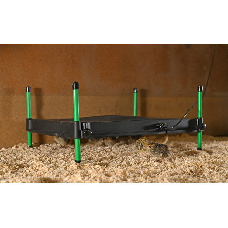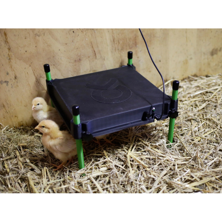Stabilní zdroj tepla pro první týdny života kuřat: deska udržuje teplotu v místě hnízda, snáze kontrolujete podmínky a snižujete riziko podchlazení.